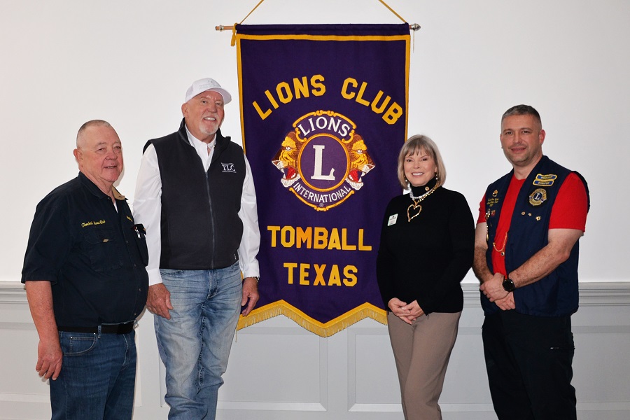 Pictured Left-Right: Lion Secretary Russell McKinney, 2nd Vice District Governor Bob Martin, Speaker Lisa Free Martin, and President Joe Sykora Jr.
